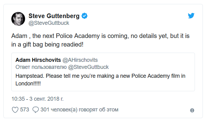 Стив Гаттенберг объявил в твиттере, что на подходе новая "Полицейская академия".