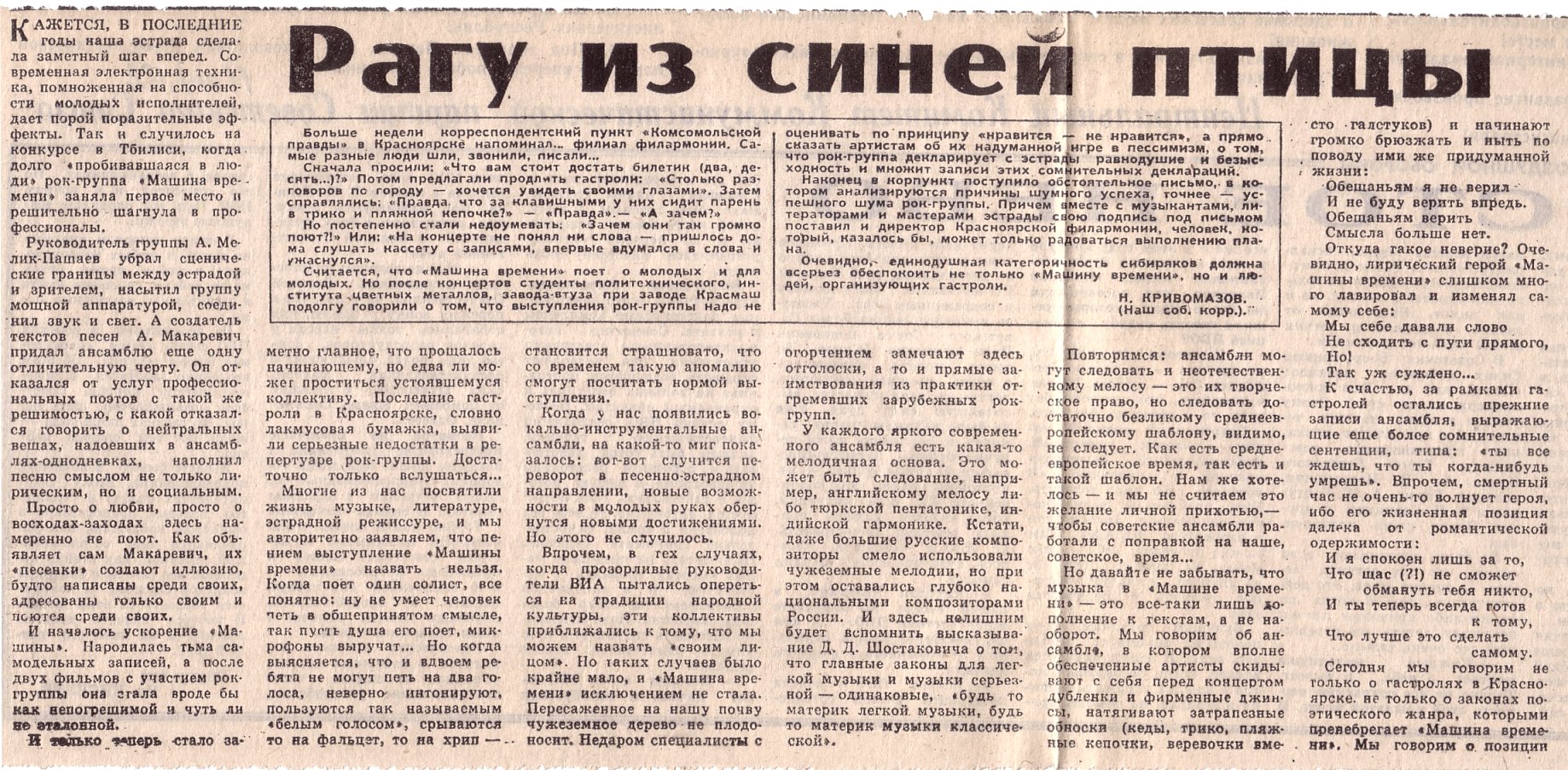 Сравните со злобным тоном известной всем поклонникам "Машины времени" статьи:
