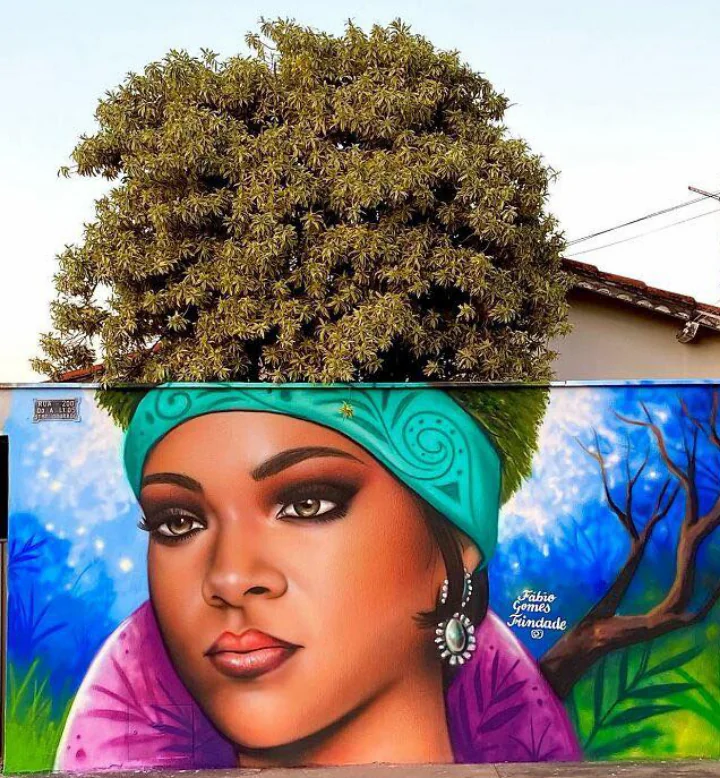 Это не сгенерировано AI, это совершенно реальные работы бразильского художника Фабио Гомеша Триндаде (Fábio Gomes Trindade) - он использует реальные деревья в качестве "волос" для своих портретов. Вот его Инстаграм.