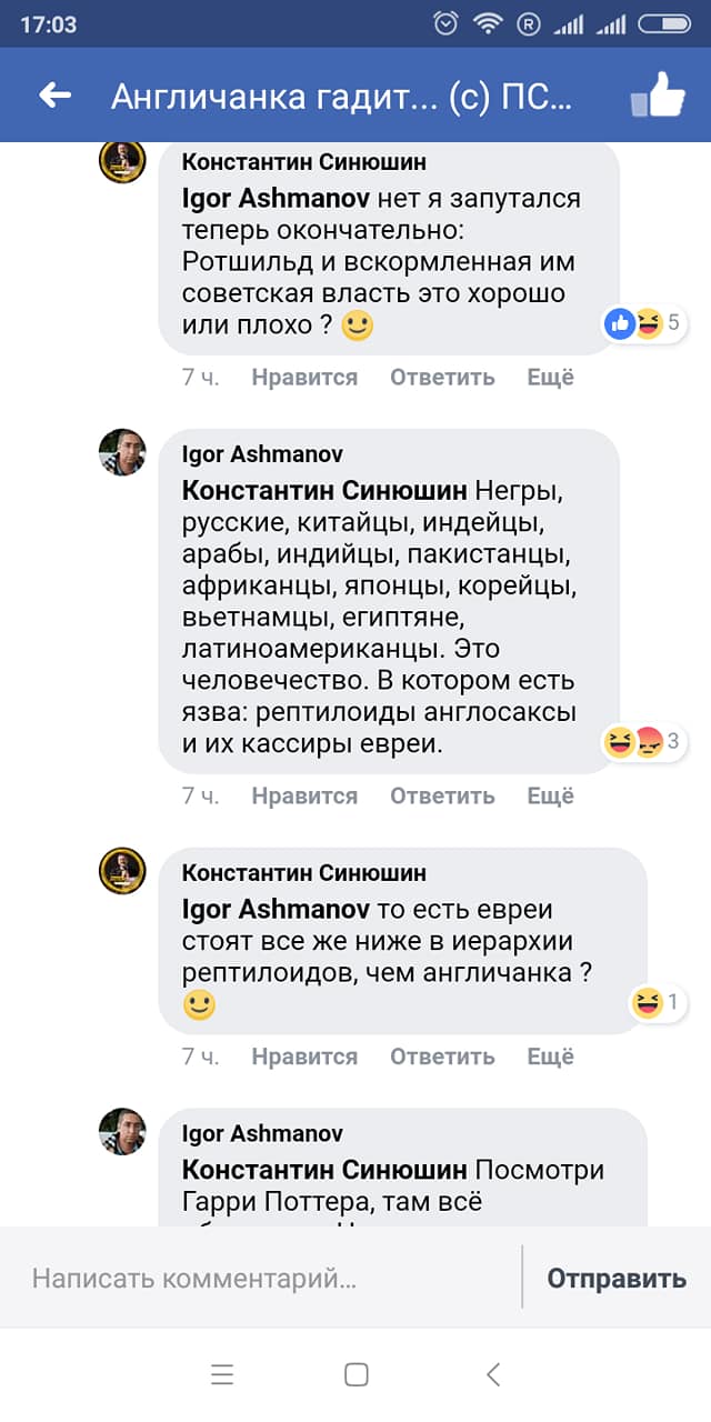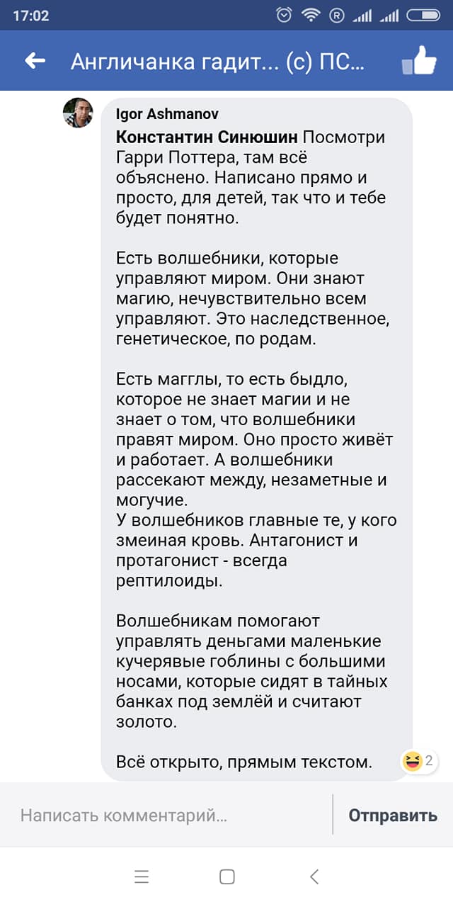 Т.е., Игорек у нас тут выпускает никому не нужные говно-продукты и бегает по кабинетам за протекцией, пилит бюджетные деньги, строит какие-то бот-фермы для уголовников, но вред причиняет не это, а англичанка, рептилоиды и евреи?