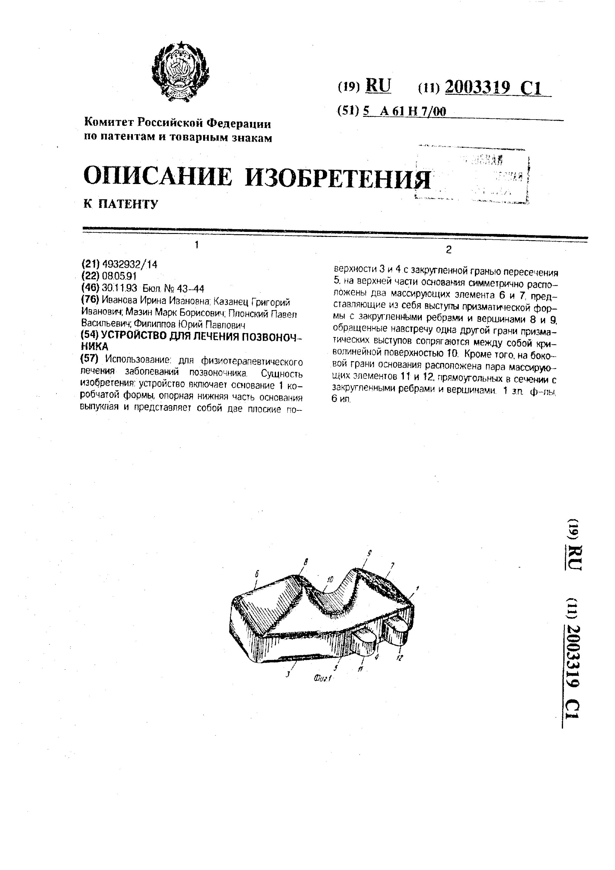 2) Мазин М. взял за основу патент США 1978г, округлив массажные вершины до двух холмов. РАсстояние между ними подходит под ширину расположения околопозвоночных мышц в пояснице! Поэтому на пояснице Армос эффективен, а вот с грудным и шейным отделом анатомия не учтена. Не говоря уже о более сложной форме зоны крестца.