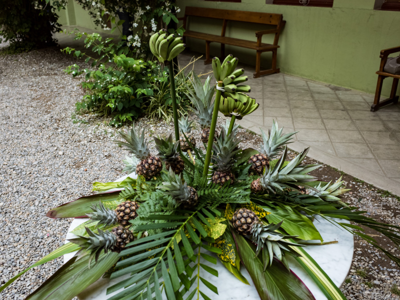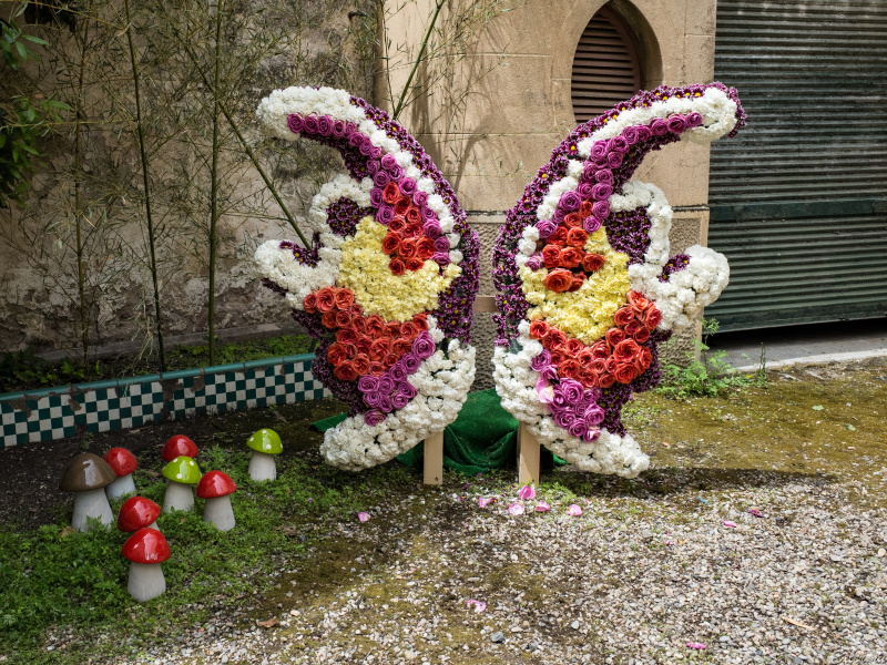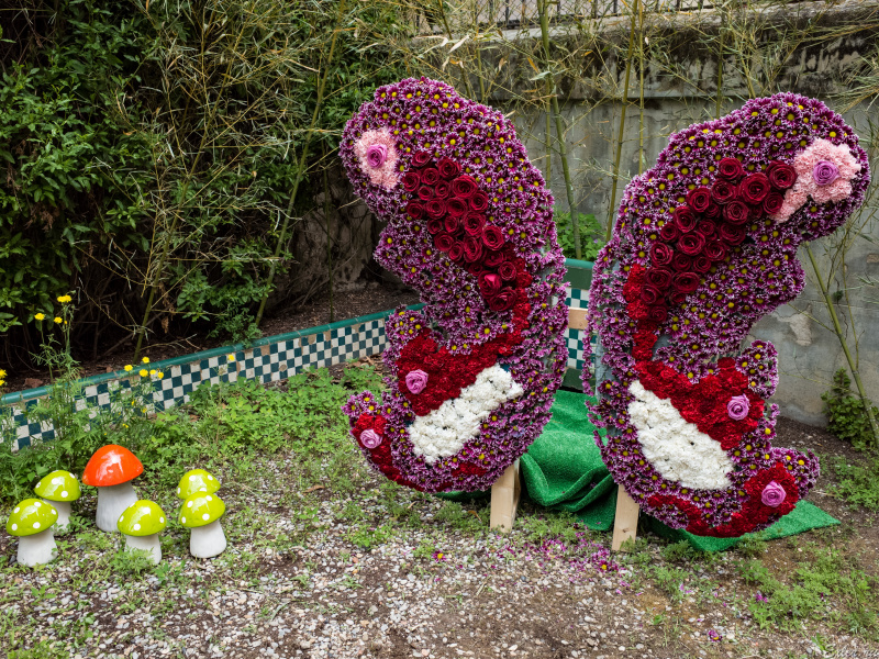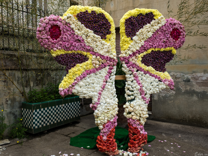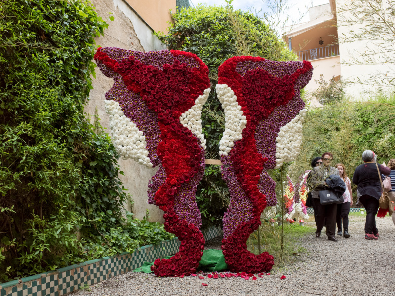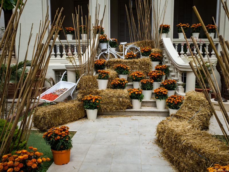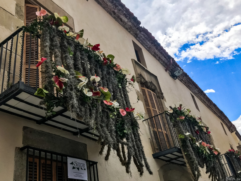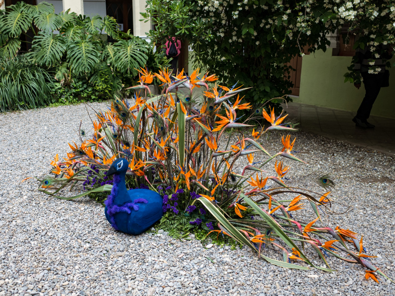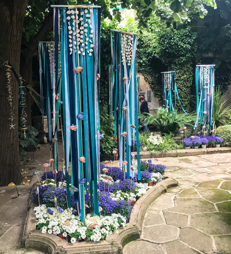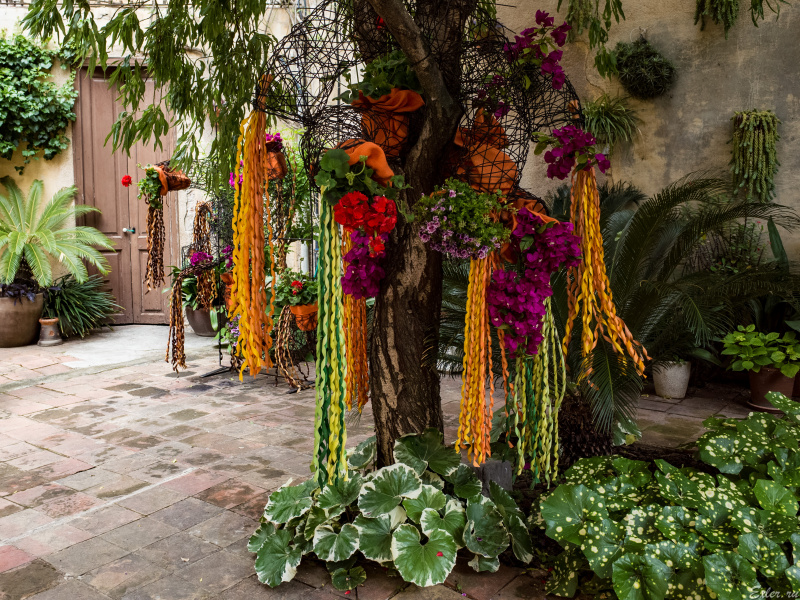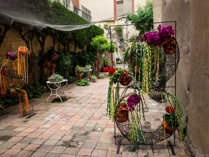 Каждый год в нашем городке проходит цветочная выставка, на которой, во-первых, демонстрируются всякие инсталляции, а, во-вторых, экспозиции при этом размещаются в старинных частных домах, которые при этом можно осмотреть изнутри, что более чем интересно, потому что когда ходишь по улицам старого города, то ты совершенно не понимаешь, что находится внутри кварталов - ты с улицы можешь видеть неприметную дверку и пару окон, а внутри там скрывается целый особняк с большой территорией.