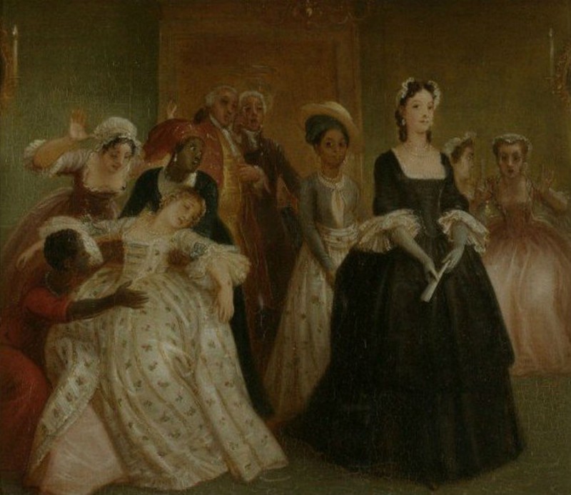 И вот на бал торжественно прибыла Филлис в новом платье из самого редкого и модного полотна - и видит Брюнетту, у которой чернокожая служанка одета в юбку из того же самого полотна.