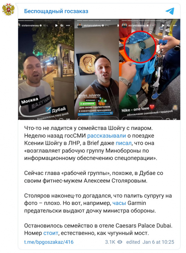 Ну и что дочь Шойгу расслабляется в Дубае - секрет полишинеля: об этом писали несколько журналистов, а также телеграм-канал Беспощадный госзаказ.