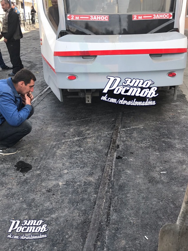 Потом до рукожопов дошло, что они сделали что-то не то. А так как они думают только тем, откуда у них растут руки, то рукожопы додумались пустить на уже застывший асфальт трамвай, чтобы он сам себе дорогу проложил: а чего долго думать-то, в самом деле?