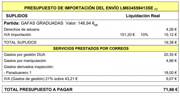 Ну и вот сегодня, через пару дней, пришел счет от таможни. Аж 72 евро начислили на покупку стоимостью $164. Что-то дофига, ровно половина суммы, но они, видимо, включили в счет переписку. Ну, хоть дошли до оплаты - я ее уже сделал там в личном кабинете (там специальный значок появляется и можно оплатить картой). Очередной квест пройден ¡Gracias a Dios!