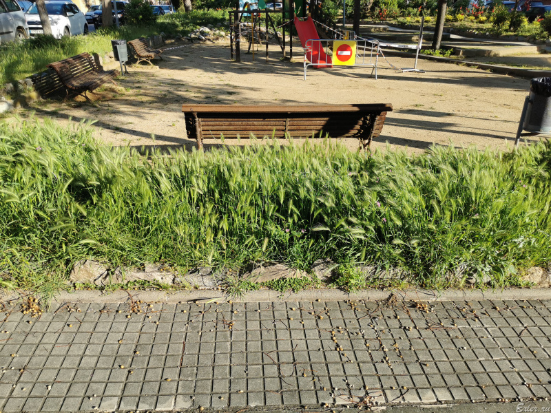 Траву в карантине подстригать перестали (только мусор убирают), детская площадка поблизости вся заколосилась: пшеница, рожь и всякое такое!