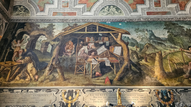 Потолок часовни сделан очень интересно - в итальянском стиле. Кажется, что это объемная лепнина, однако это рисунок.