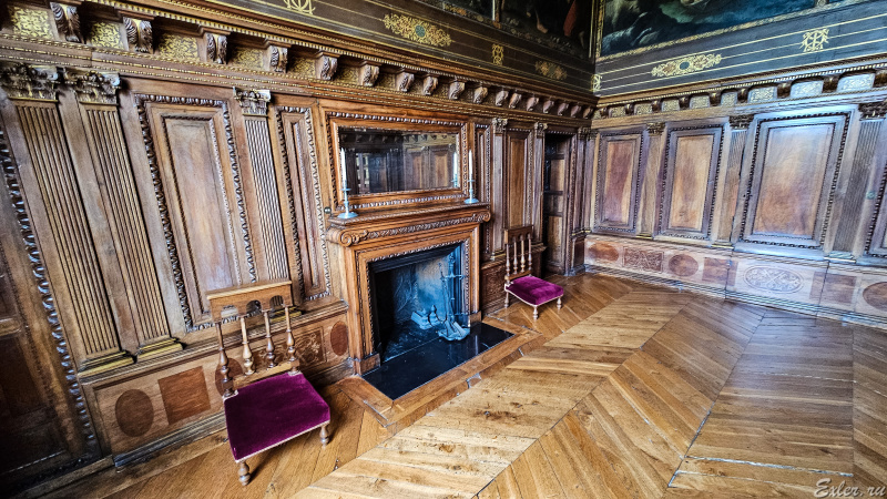 Комната отдыха, декорированная специально для визита короля. И после визита Людовика XIV, ее еще и отделали золотом - в память об этом величайшем событии в жизни семьи владельцев замка.