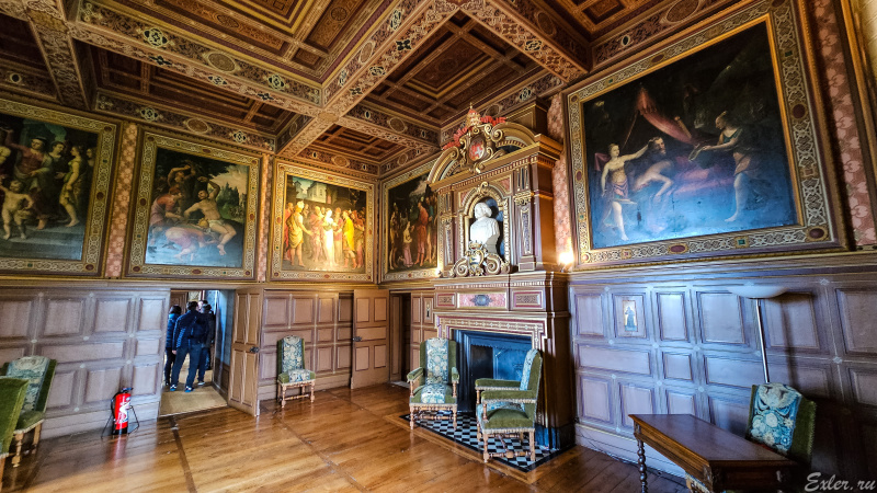 Замок открыт для посещения, по нему водят экскурсии, и у нас была возможность ознакомиться с его интерьерами - вот небольшой фоторепортаж.