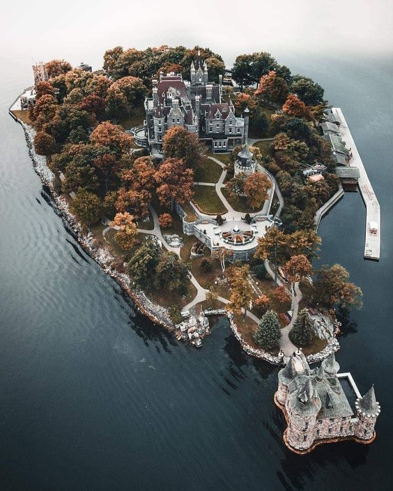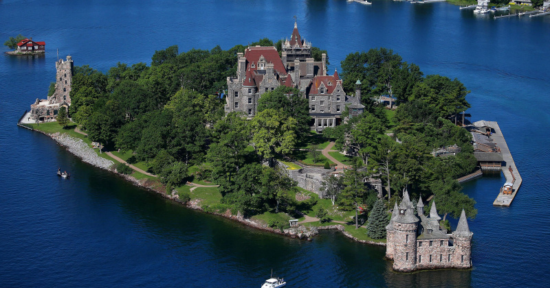 История следующая. Немец по имени Джордж Болдт приехал в Штаты в 13-летнем возрасте в 1865 году. Через какое-то время он стал богатым человеком: ему принадлежали несколько очень дорогих отелей на Манхэттене. Потом он женился на Луизе Августине Кехер и решил для нее возвести замок, для чего купил остров "Мрачный", на границе с Канадой.