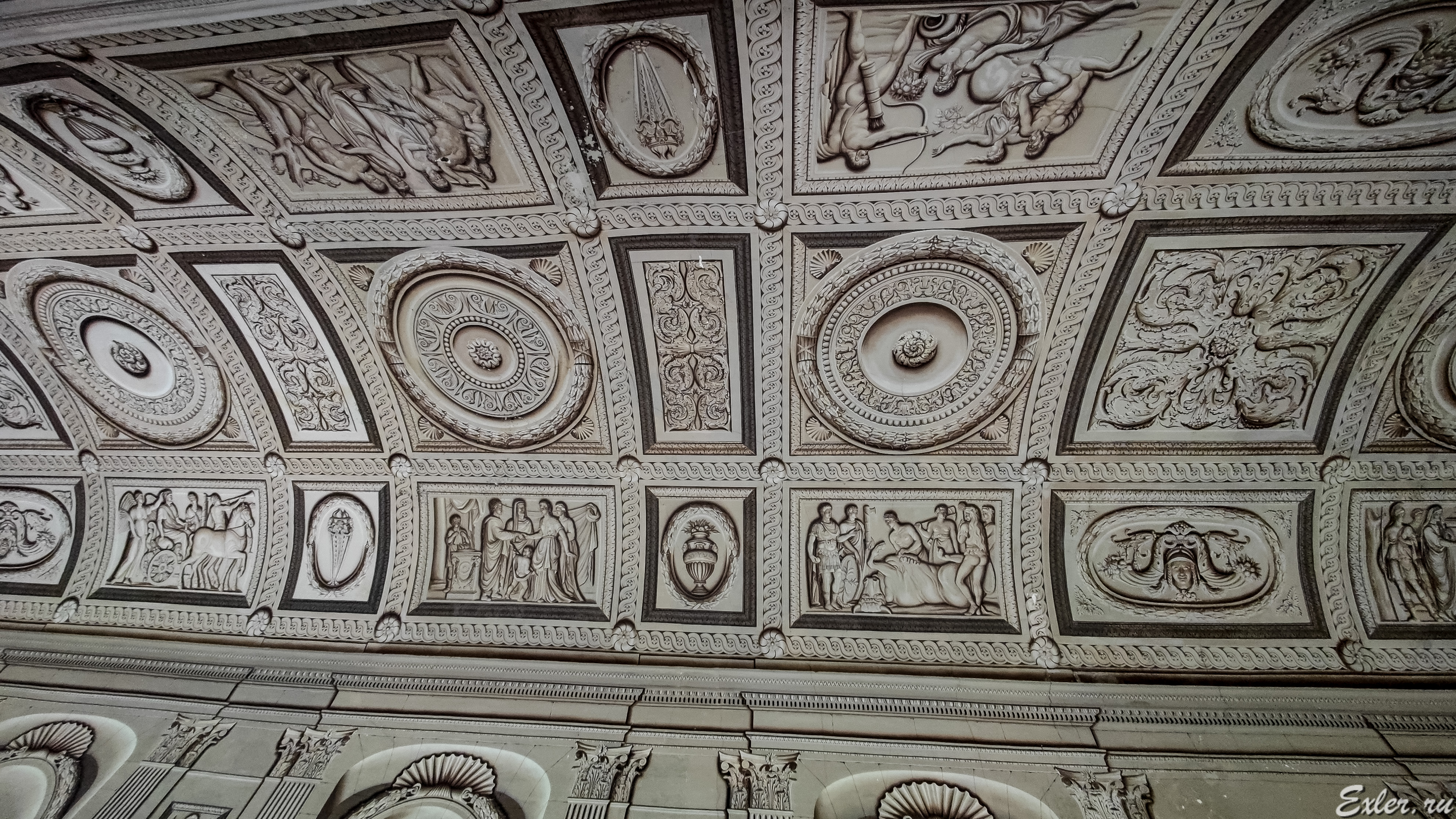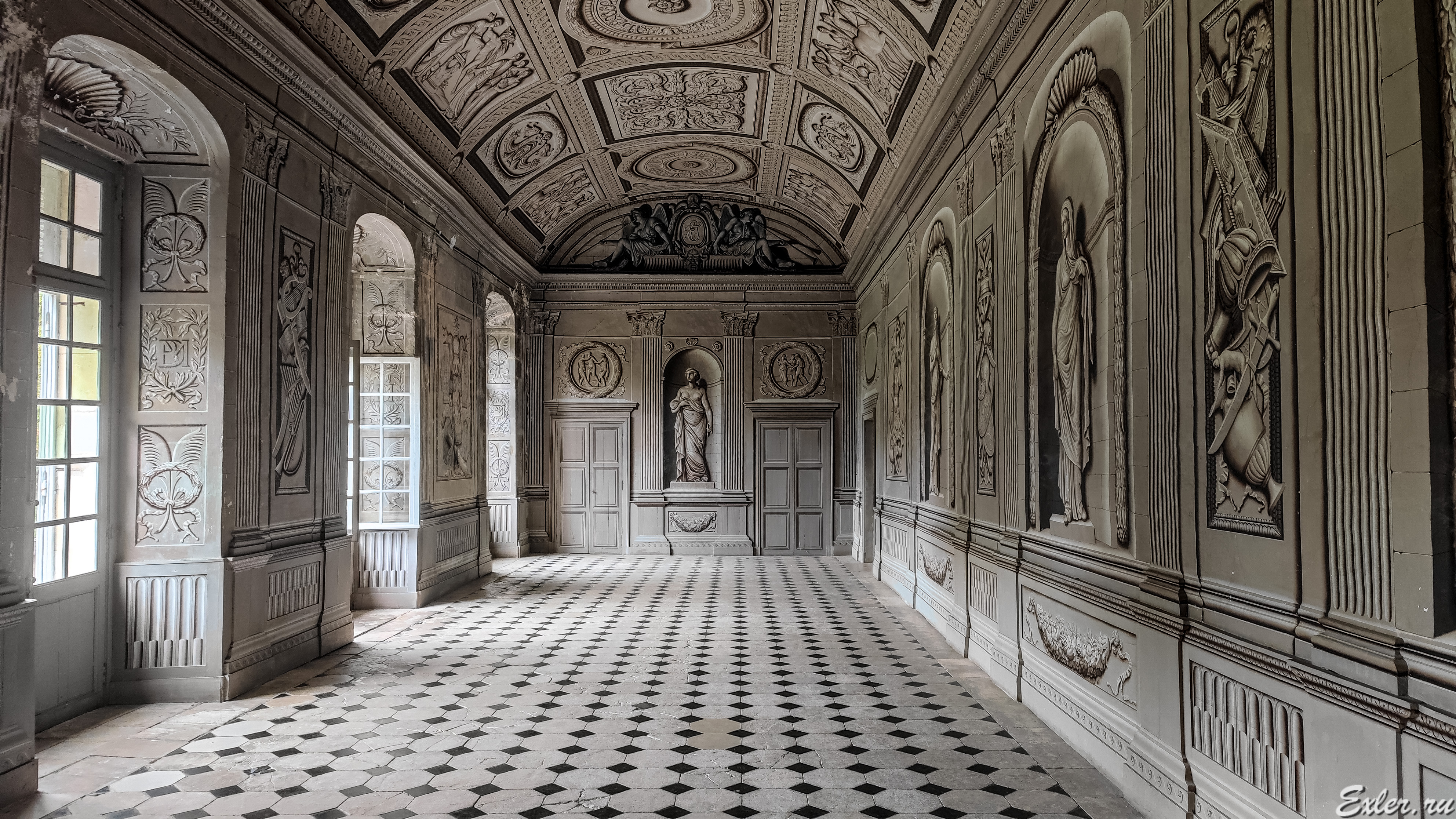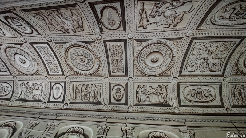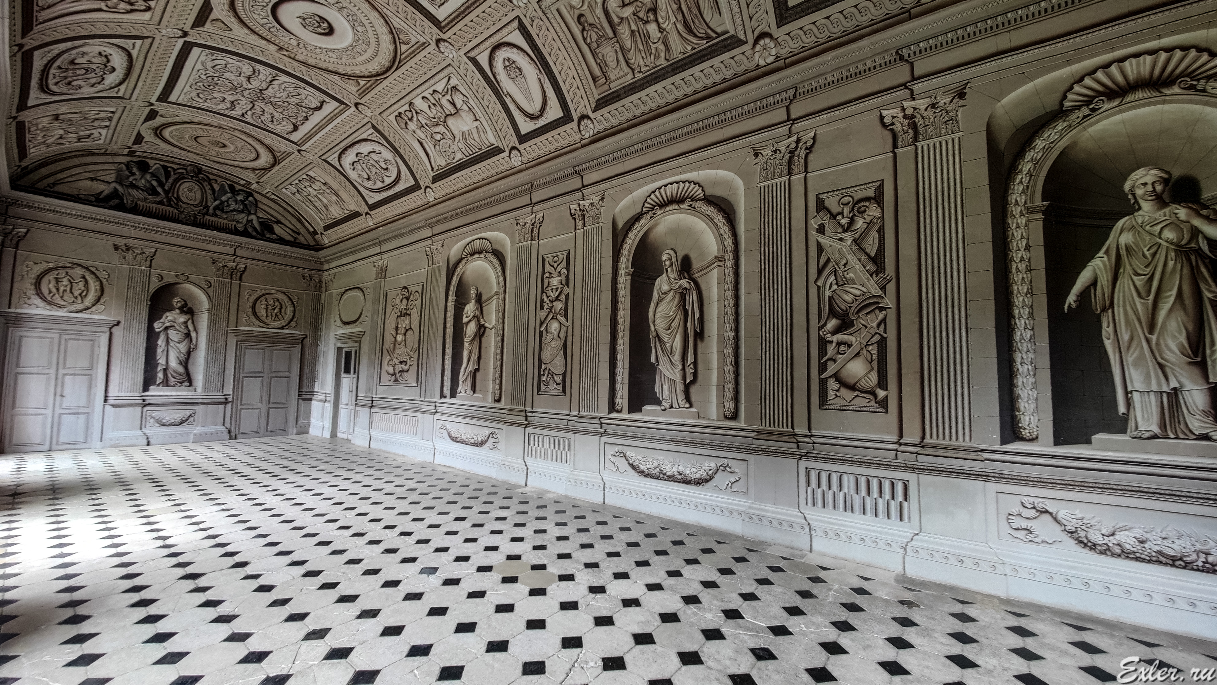Зал-обманка. Кажется, что это все реальные статуи, лепнина и так далее. Но на самом деле это просто рисунки.