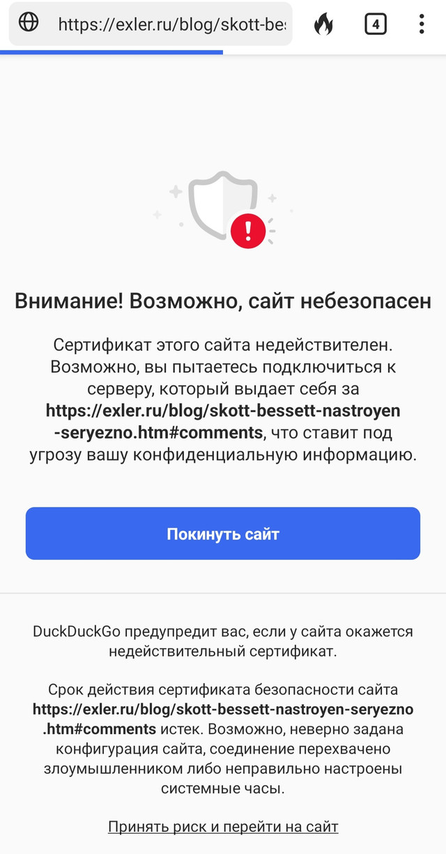 Осталось понять, что было 18 января, когда браузер показывал проблему с сертификатом для exler.ru, который еще не истек.