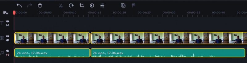 7) Теперь все дорожки разрезаны в нужном месте, каждый кусок аудио привязан к своему куску видео – перетаскивается и удаляется вместе с ним.