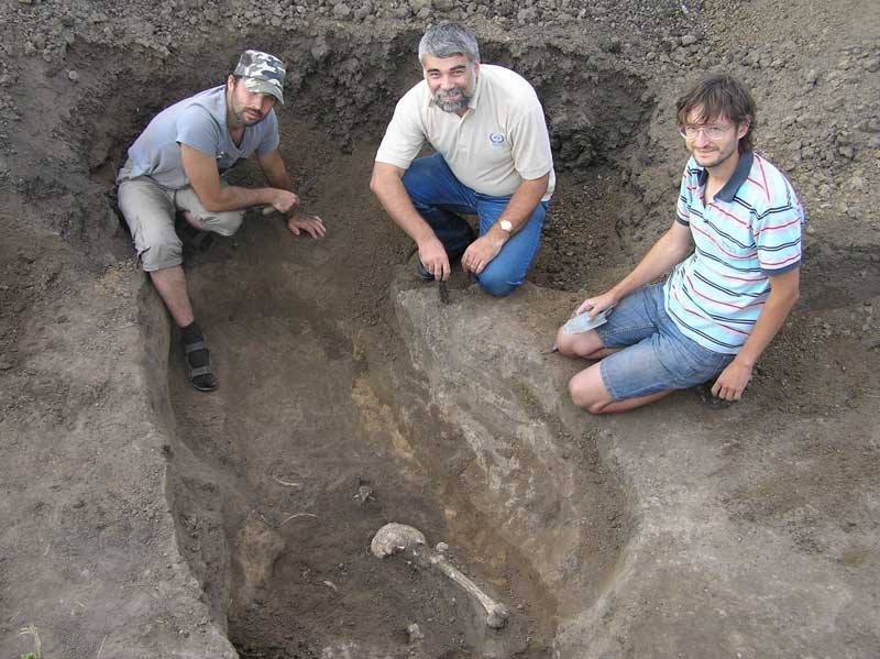То-то удивился палеоантрополог Станислав Дробышевский, обнаружив эту заметку. Потому что на фото изображен он, Александр Соколов и Константин Задорожный. Сделано оно в 2013 году на раскопках в Войтенках (Харьковская обл.) у погребения черняховской культуры. Правда, в оригинале фото выглядит немного по-другому.