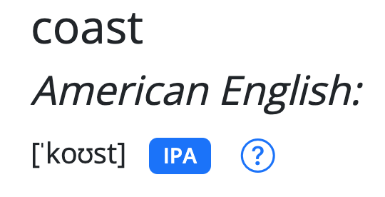 В Америке нету произношение «коуст». Ни на каком из «коустов» так не произносят.