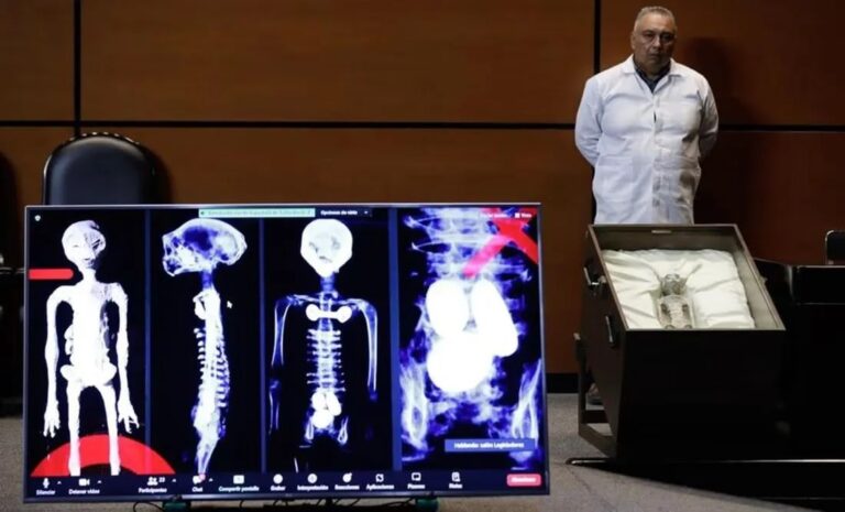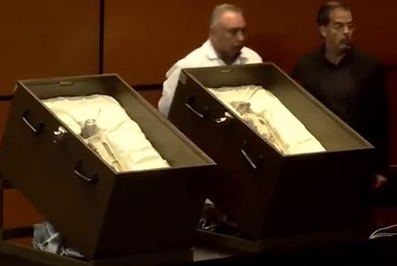 "Объекты были представлены в деревянных ящиках под стеклом, мумифицированные «инопланетяне» не имели зубов, но были с тремя пальцами на руках. По словам Моссана, Национальный автономный университет Мексики (UNAM) выяснил при радиоуглеродном анализе, что «телам» более тысячи лет.
