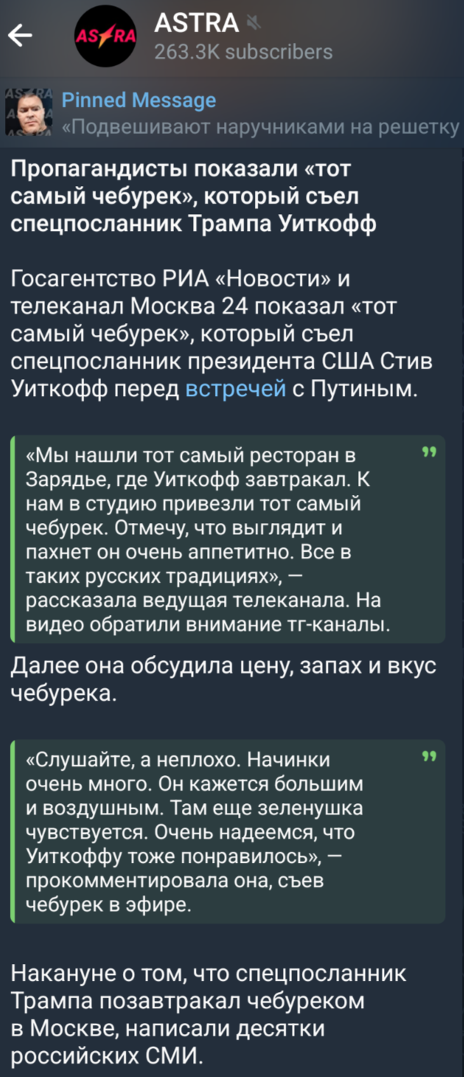 Что Уиткофф приехал в Москву и соизволил откушать чебурек.