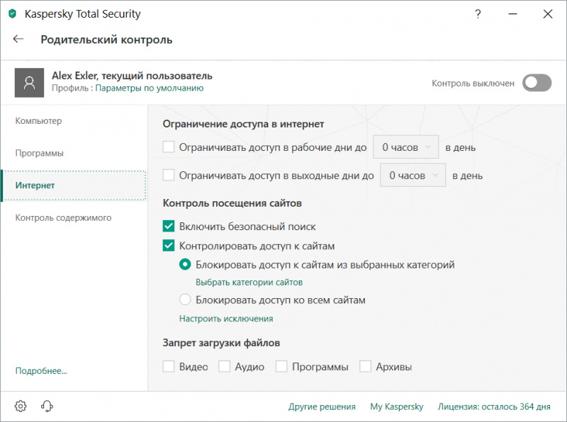 Вот возможности родительского контроля - именно то, что мне требуется.