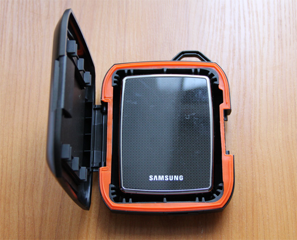 Защищает от падений (утверждается, что с таким футляром жесткий диск будет выдерживать падения с высоты двух метров), бережет от повреждений, также защищает от дождя и песка. Имеет карабин, с помощью которого футляр можно прикреплять, например, к походному рюкзаку. При этом имеет закрываемое отверстие для подключения кабеля USB, так что диском можно пользоваться, не вынимая его из футляра.
