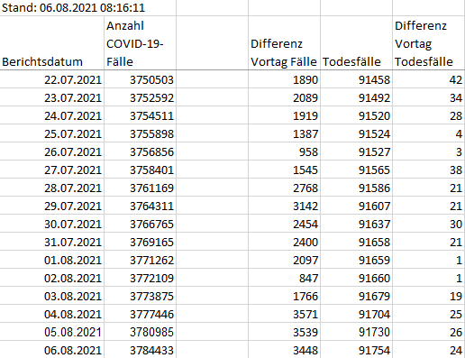 На Worldometers совсем другие данные, чем у Вас. Например, по Германии 28 июля там 28 смертей.