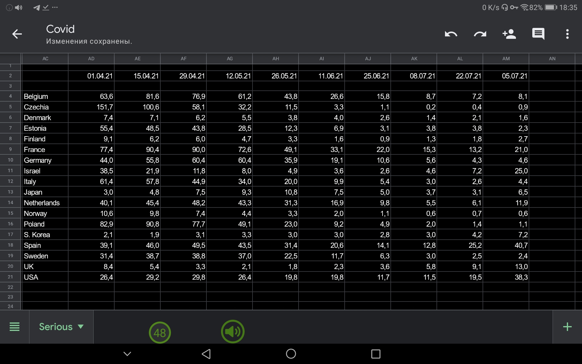 И я с двухнедельным отчётом по тяжёлым/на миллион населения. Хотя кое-где ещё продолжается снижение, штамм Дельта постепенно захватывает Европу. Можно отметить значительный рост в Испании, Франции, USA и Израиле. В Израиле правительством уже рассматривается введение нового локдауна.