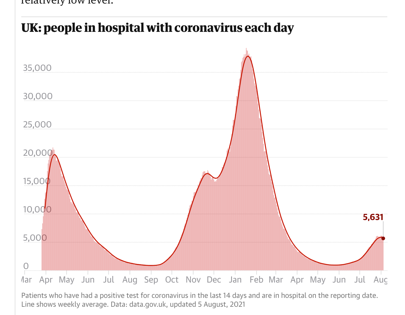 ГОспитализация пока на плато, и плато ниже условно в то же кол-во раз, на которое эффективна AZ (~80%). Как я и надеялся пару месяцев назад. . Надеюсь, что вскоре начнут бегающие чашечки Петри вакцинировать (детишек)... пока они в школу не вернулись.