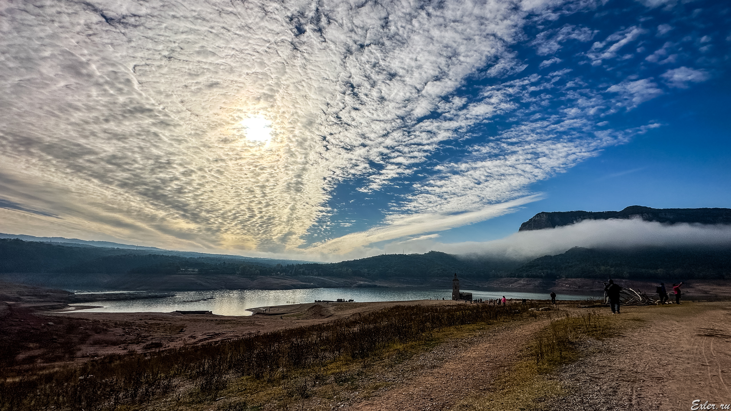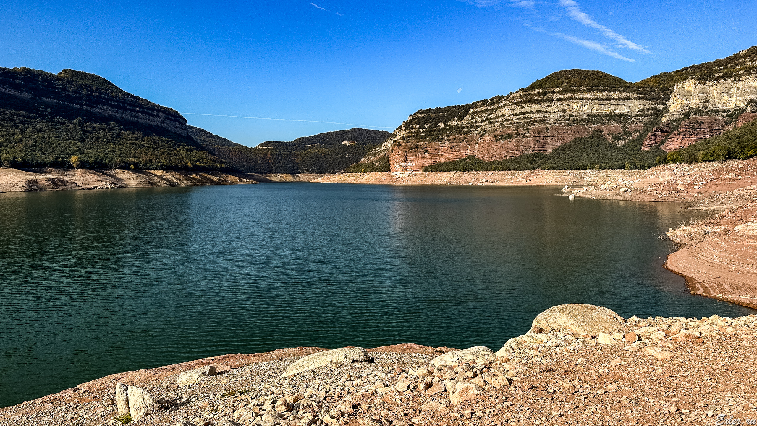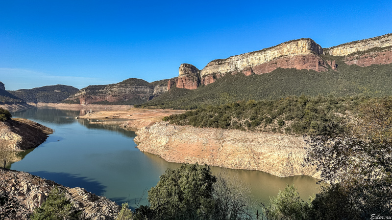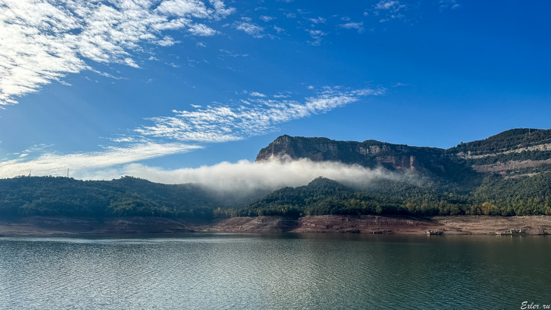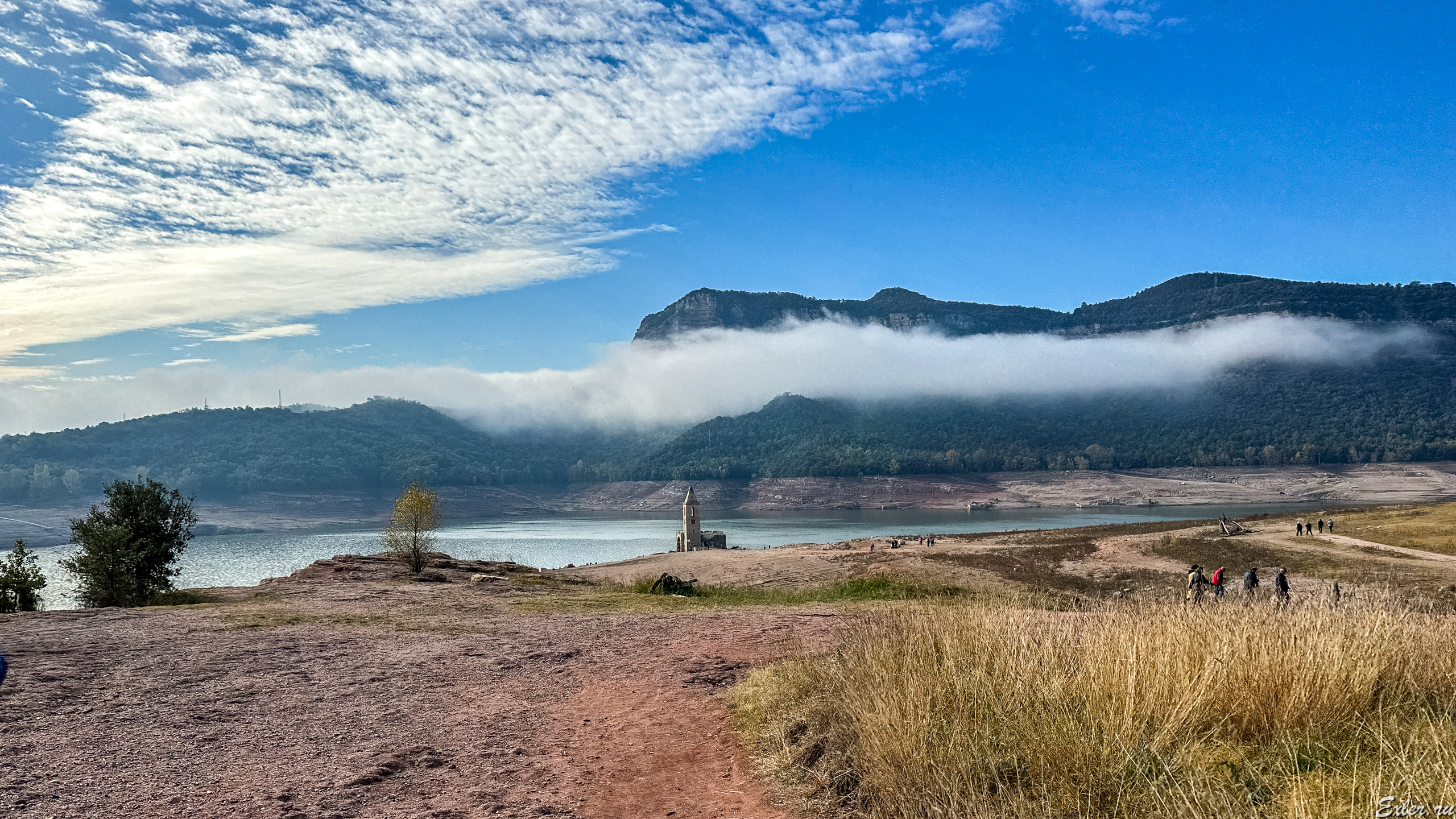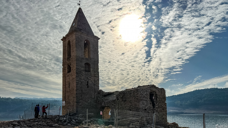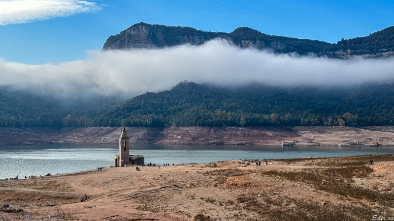 Водохранилище Sau расположено на месте бывшего городка, находящегося в долине. В городке была церковь, расположенная на возвышении, и верхушка этой церкви обычно видна, когда смотришь сверху с горы на водохранилище со стороны города Тавертет  - вот это я сфотографировал пять лет назад.