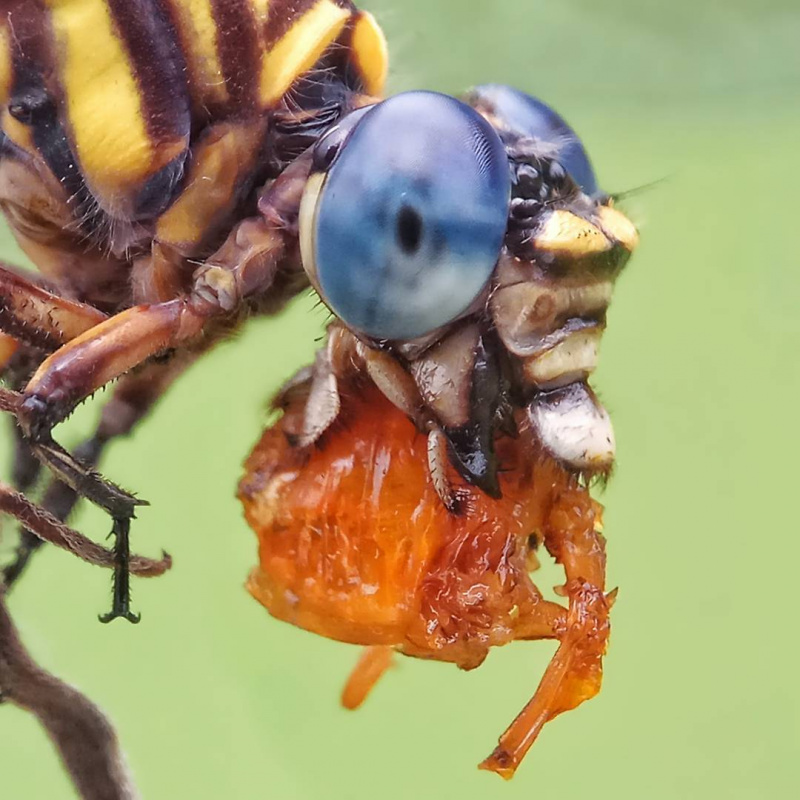 Те фотки что в журналах делают с мёртвыми насекомыми - их замораживают в морозилке. Тру натуралисты этого не признают и ходят в полях с огромными вспышками.