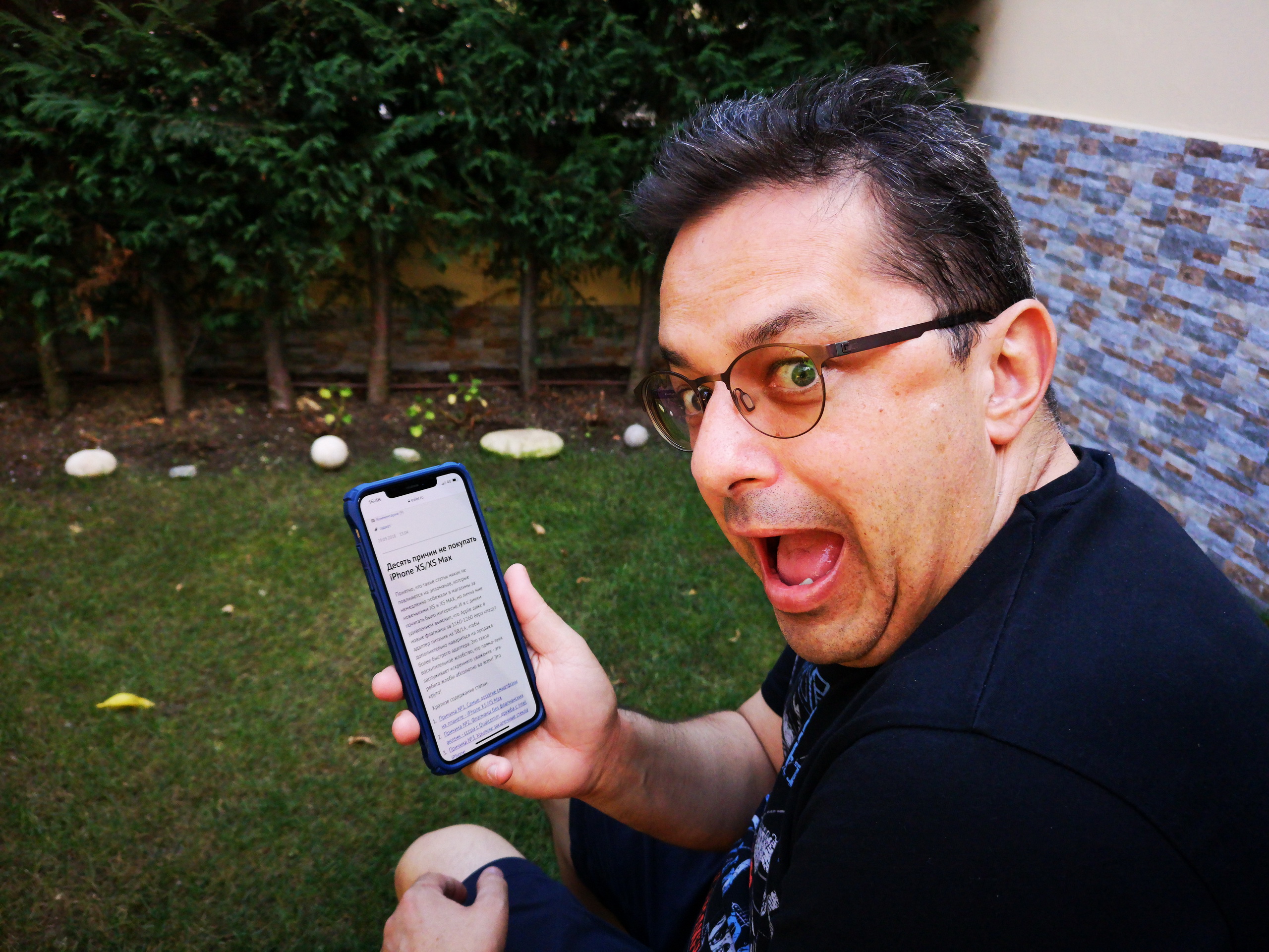 Решительно должен заявить, что вон то распространяемое недоброжелателями фото, на котором меня якобы поймали втыкающим в айфон XS Max, - это галимая провокация и явное фотошопство!