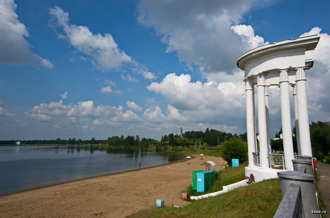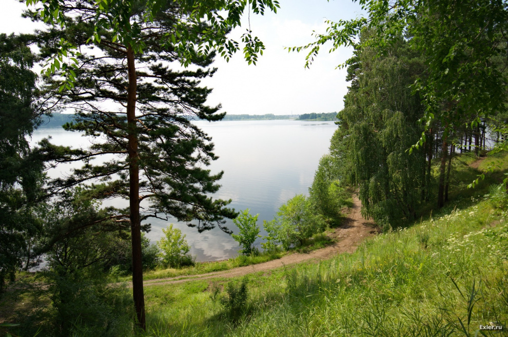 В Железногорске есть очень красивое озеро искусственного происхождения: оно создано силами жителей города, которые расчистили пойму реки Кантат, после чего сделали дамбу и систему шлюзов, благодаря которым появилось это озеро - посмотрите, какая красота. Это все в черте города: вокруг озера - жилые кварталы. (Все фото - кликабельны.)