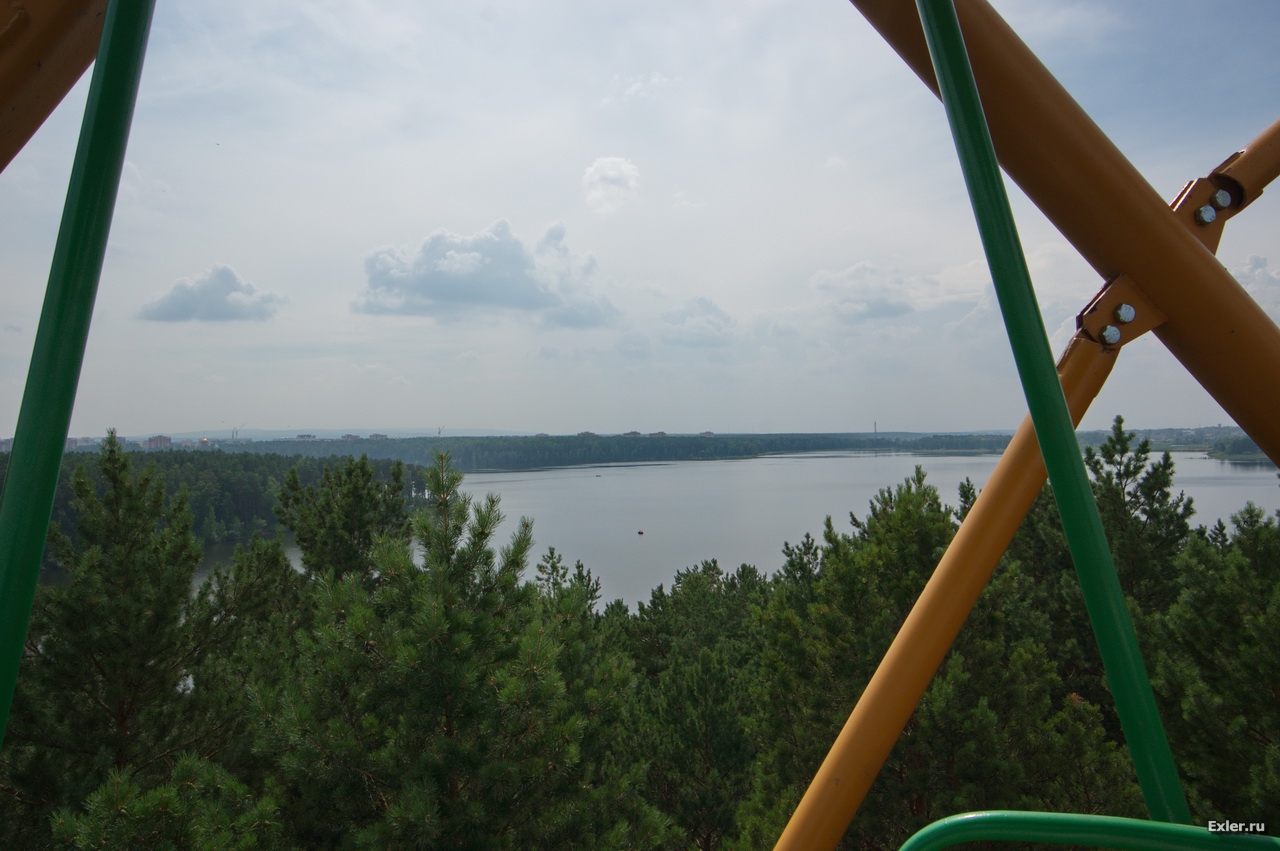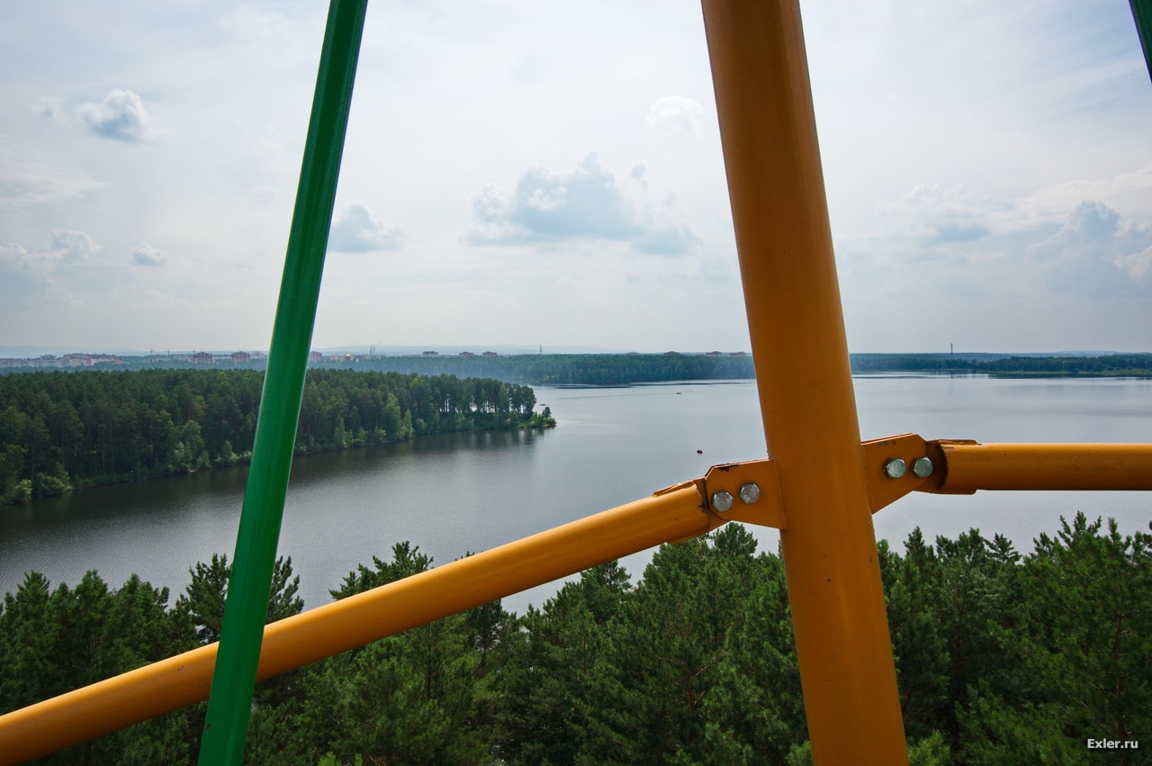 Забрались на колесо обозрения, чтобы сфотографировать озеро и город с высоты.
