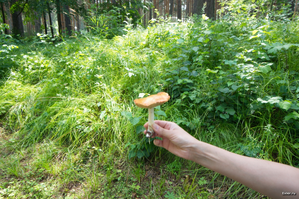 В парке полно грибов. Так и шныряют под ногами.