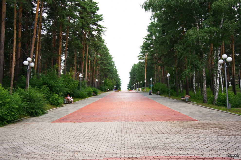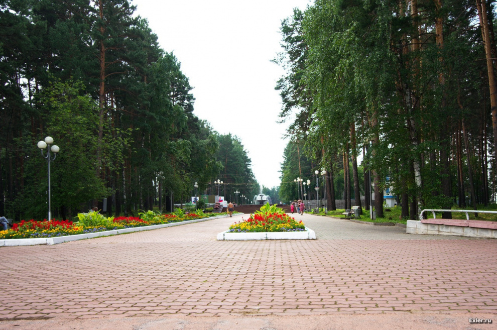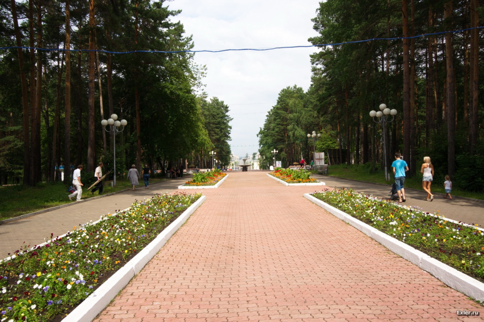 Центральная аллея, ведущая к фонтану, детскому парку и зоосаду - старейшему в Сибири, кстати.
