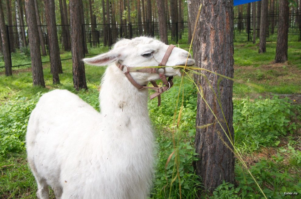 Лама тут почему-то на свободном выпасе.