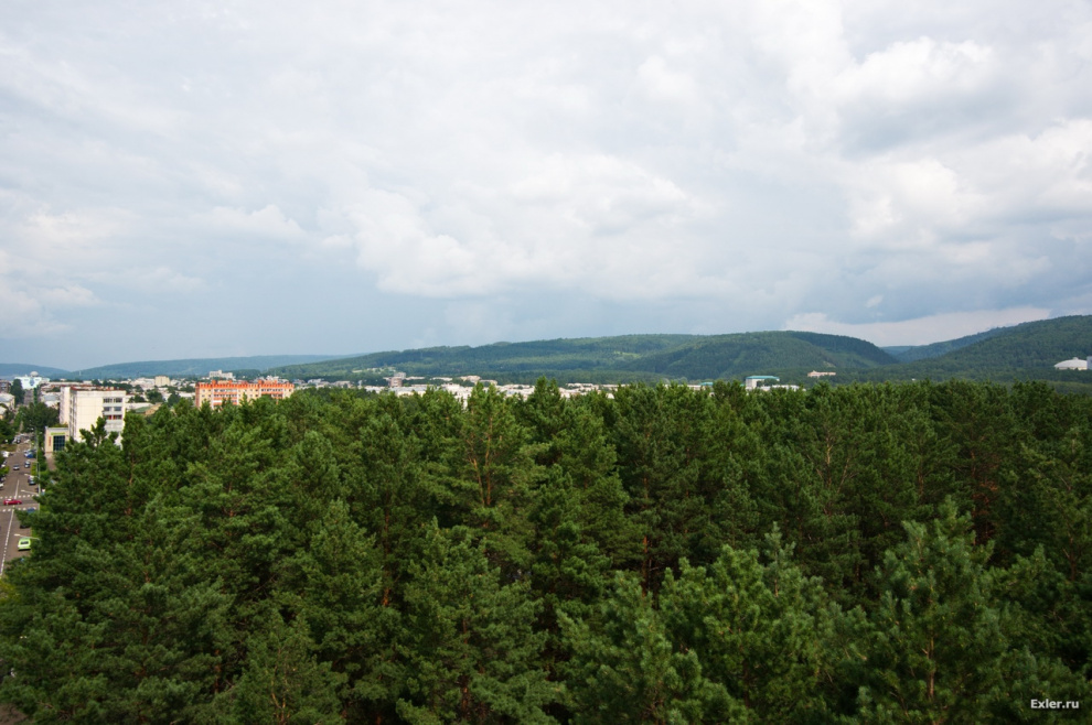 Железногорск - закрытый город в Красноярском крае. Раньше он назывался "Красноярск-26". В нем расположено несколько предприятий военного и космического назначения. При строительстве города старались максимально не менять природный ландшафт, поэтому если посмотреть на город сверху, то кажется, что жилые кварталы располагаются прямо среди нетронутой тайги.