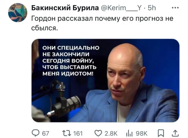 Всю эту хрень репостили, кому не лень. Мне было лень, я не репостил: мало ли, что там болтает Гордон