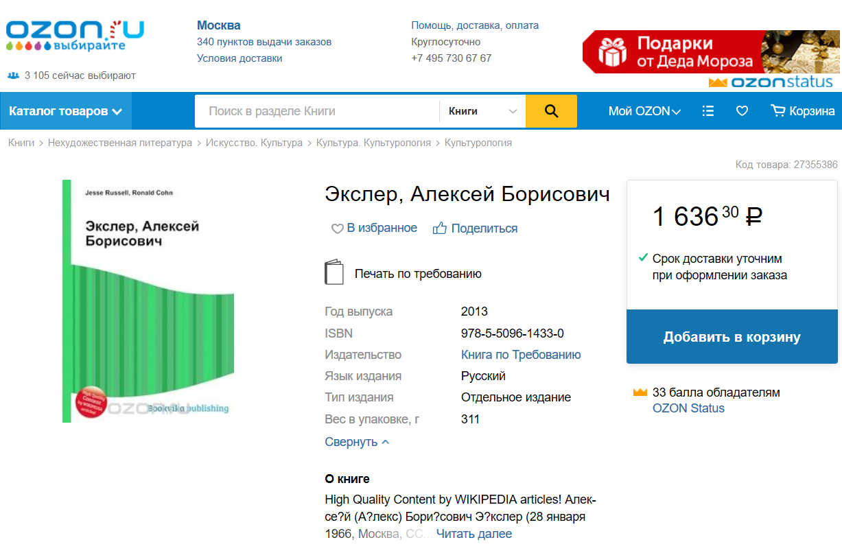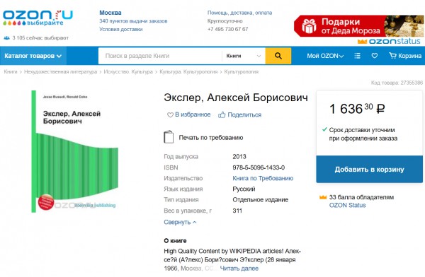 при выборе в разделе "группа, общество, личность" (куда входит и эта книга) носителя "печать по требованию" появляется аж 54 941 товара. быстро пробежал глазами по заголовкам - попадаются не менее замечательные названия книг со скопированным описанием из поста kasperyan