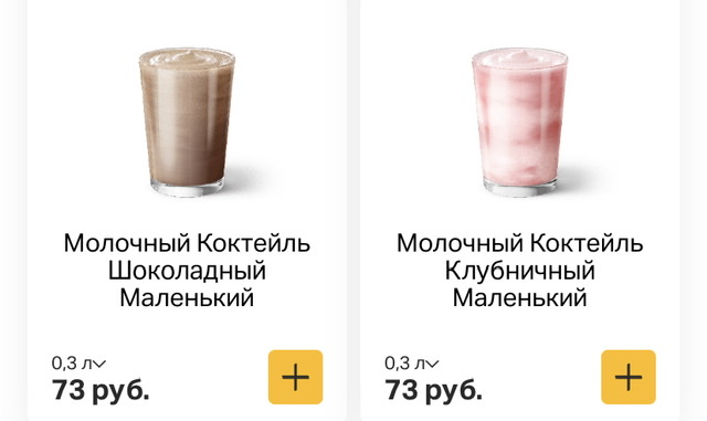 Но и это еще не все потери — меню ресторана оскудело едва ли не вполовину. Больше нечего ловить поклонникам «Бигмака» и «Бигтейсти» — этих блюд в меню нет. Как нет никаких роллов, холодных напитков, мороженого и молочных коктейлей, воды, морковных ломтиков и яблочных долек. «Мак-комбо», «Хэппи Мил» и простой капучино пропали как вид.