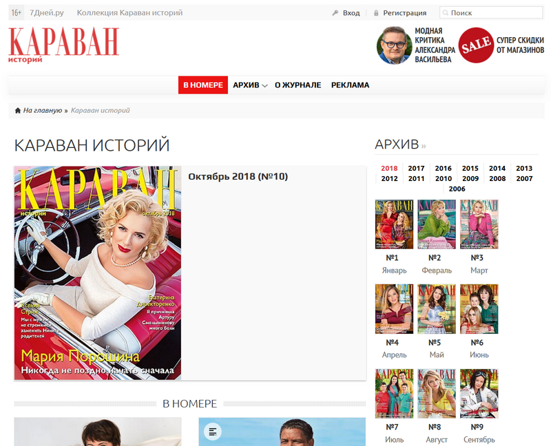 Оказывается, журнал "Караван историй" можно бесплатно читать в Интернете. Сайт, правда, обвешан Яндекс.Директом по самые помидоры и каждая статья разбивается на 10-15 страниц, но что делать с излишками рекламы - вы знаете, не маленькие, а статьи можно и полистать, если они интересные. Я в "Караване историй" читаю переводные статьи о всяких актерах, актрисах и режиссерах, о русских художниках, писателях и меценатах прошлого, о современных российских актерах-актрисах - там попадаются интересные статьи.