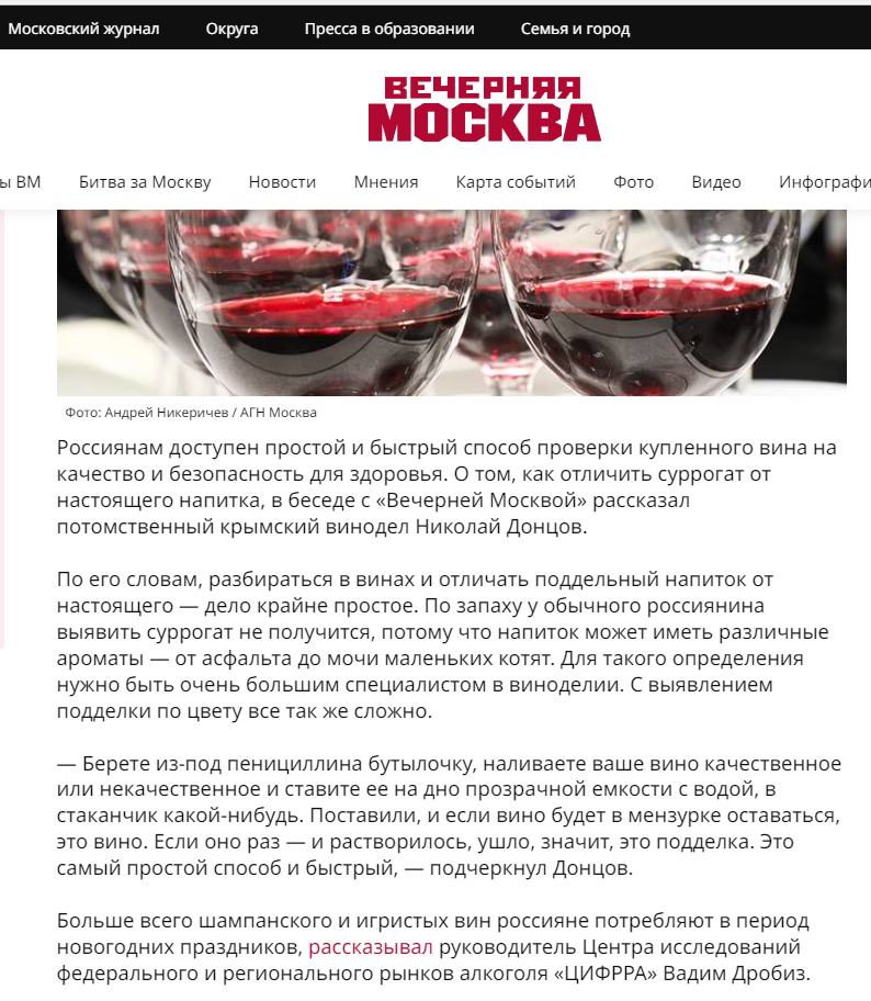Я понимаю, конечно, что "Вечерка" - это та еще помойка, как и какие-нибудь "Известия". Но опять тиражировать эту шнягу по поводу "как отличить суррогат от настоящего вина", да еще и от имени выдуманного "потомственного винодела" - это вообще зашквар какой-то. Причем они как опубликовали, так эту бредятину начали перепечатывать остальные издания похожего толка, вроде "Аргументы и fuckты".