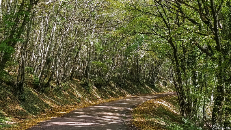 Врет, чертяка. Не хочет грибные места выдавать 😉 Это буки. Дубы еще зеленые.