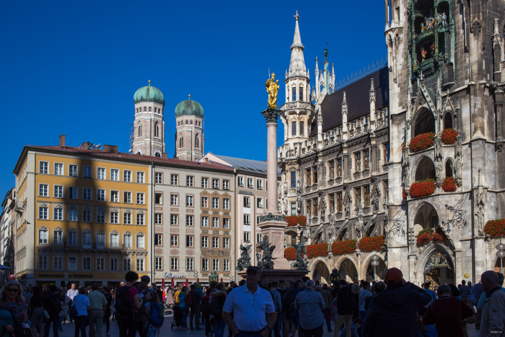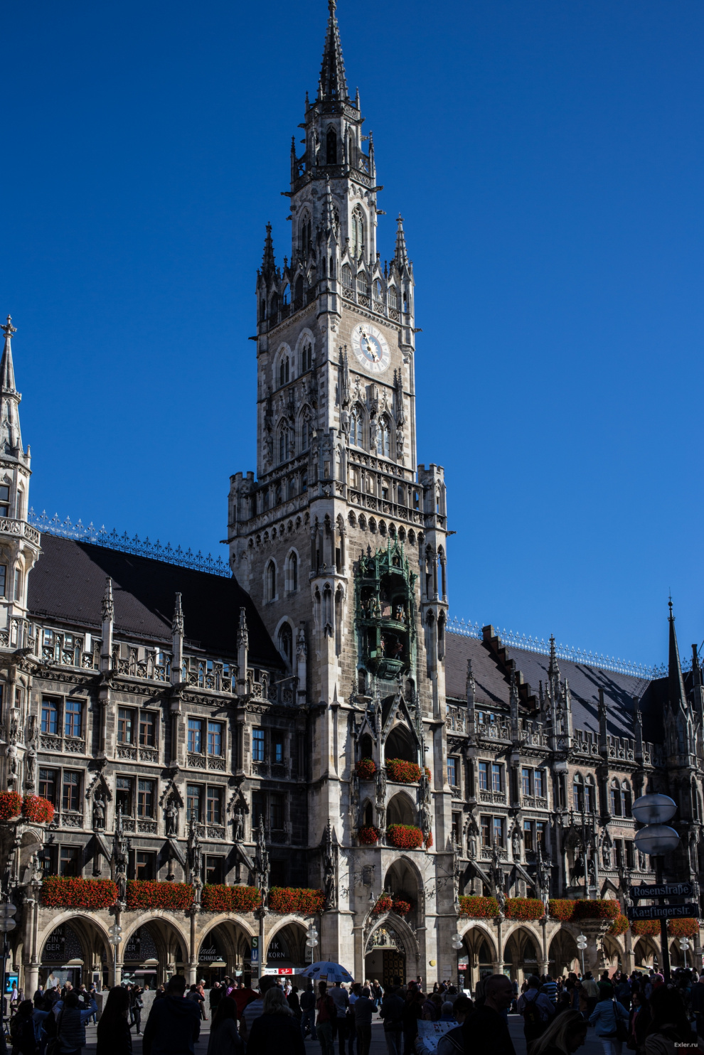 Мариенплатц и красивейшее новое здание городской ратуши.