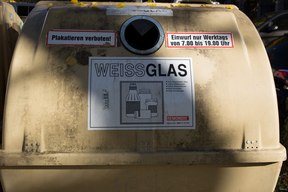 Немцы - люди педантичные. Тут не просто отдельные емкости для стеклянной посуды, а емкости для коричневого стекла, зеленого и прозрачного! Убиться можно.