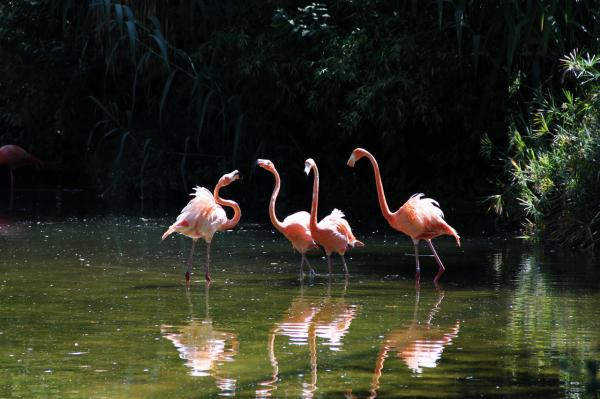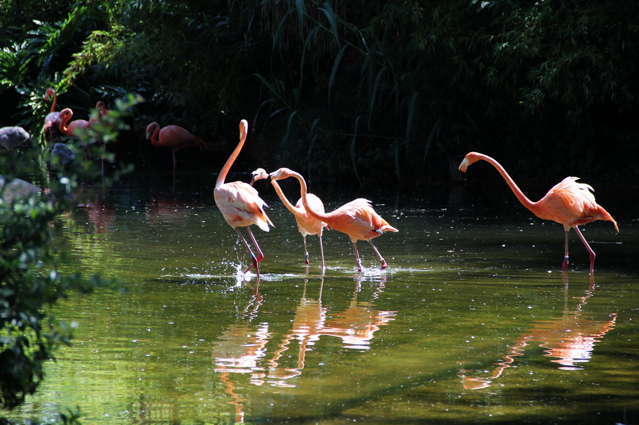 Поэтические фламинго на деле оказались склочными и скандальными. Мы как раз застали момент, как несколько альфа-самцов затеяли свару с бета-самцом.