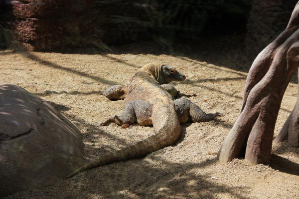 Эти вараны не в пустыне живут. Это большое ящирецо, похоже, комодский дракон, так что ареол обитания этого монстра скорее тропические леса.