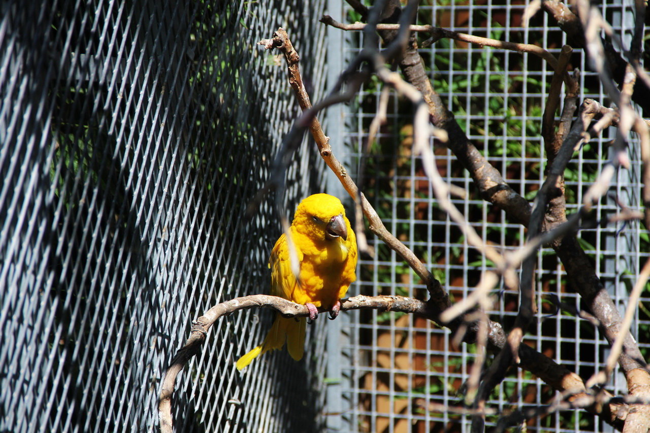 Прикольно то, что вокруг клеток растут всякие деревья, на которых галдят попугаи на свободном выпасе - живут прямо на деревьях.
