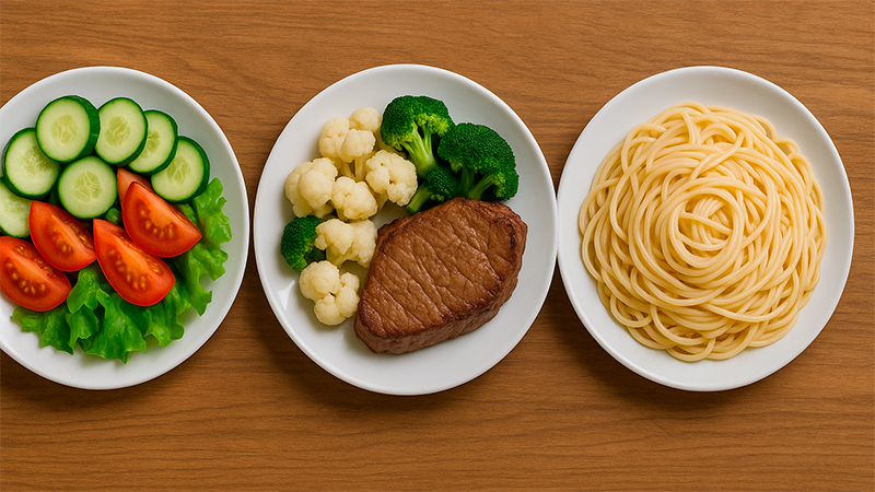 • Низкий ГИ (<55): медленное повышение глюкозы (овощи, мясо, рыба, яйца).