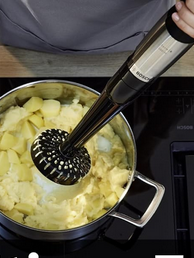 Типа блендера это? Повара не рекомендуют, дескать разбивает крахмальные зерна. Руками не очень трудно. Но я не приду с оружием, учить тебя варить картоффель )