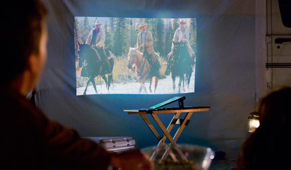 Что можно выводить с помощью проектора? Ну, прежде всего, фильмы. В темном помещении смотреть кино с проектора планшета вполне комфортно, причем там же еще и звук реально очень приличный, так что действительно получается хоть и простенький, но домашний кинотеатр.